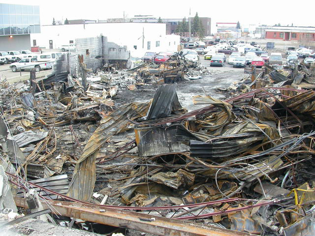 April 5, 2003 was a very sad day. An electrical fire started in one of the cars left for repairs overnight and the result was devastating. The building caught fire some time around 12:00 AM and was fully involved by the time the Fire Department arrived. Over a period of 13 hours, the shop burned to the ground taking with it 19 customers’ vehicles, many of which were irreplaceable.