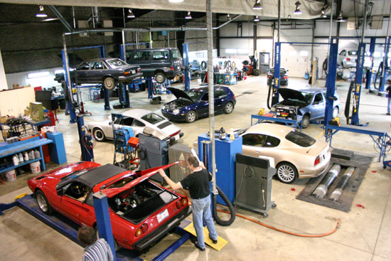 February 14, 2010: During the five years at our new location, we made some improvements. Some of the differences are visible … so see if you can find Waldo! We’ve grown to nine technicians, so in 2006 we added two more hoists. In 2007 we installed a nitrogen generator so our customers could benefit from improved tire performance. We installed new compact fluorescent lighting in 2008 that made the shop 50% brighter and used 30% less energy. Although it can’t be seen in the photo, 2008 was also the year we purchased our 5-car enclosed transporter, started our Arrive and Drive motorsport tourism division, and began transporting our customers’ sports cars to race tracks across the US and Canada. In 2009 we retired our old alignment equipment, replacing it with the latest John Bean computerized aligner. And in 2010 we purchased the quietest air compressor on the market to make the environment more pleasant for our staff. What you can’t see is the investment we’ve made in computer diagnostic equipment and specialty tools to make our staff more efficient. And it is still as clean and orderly as the day we moved in.